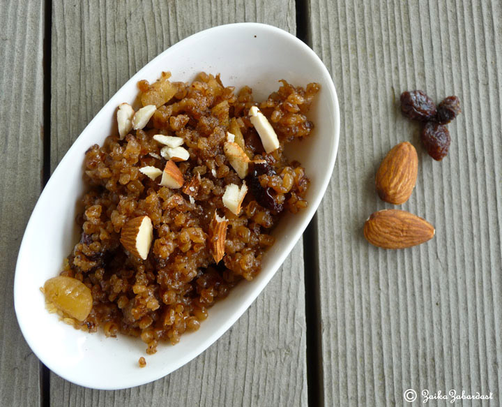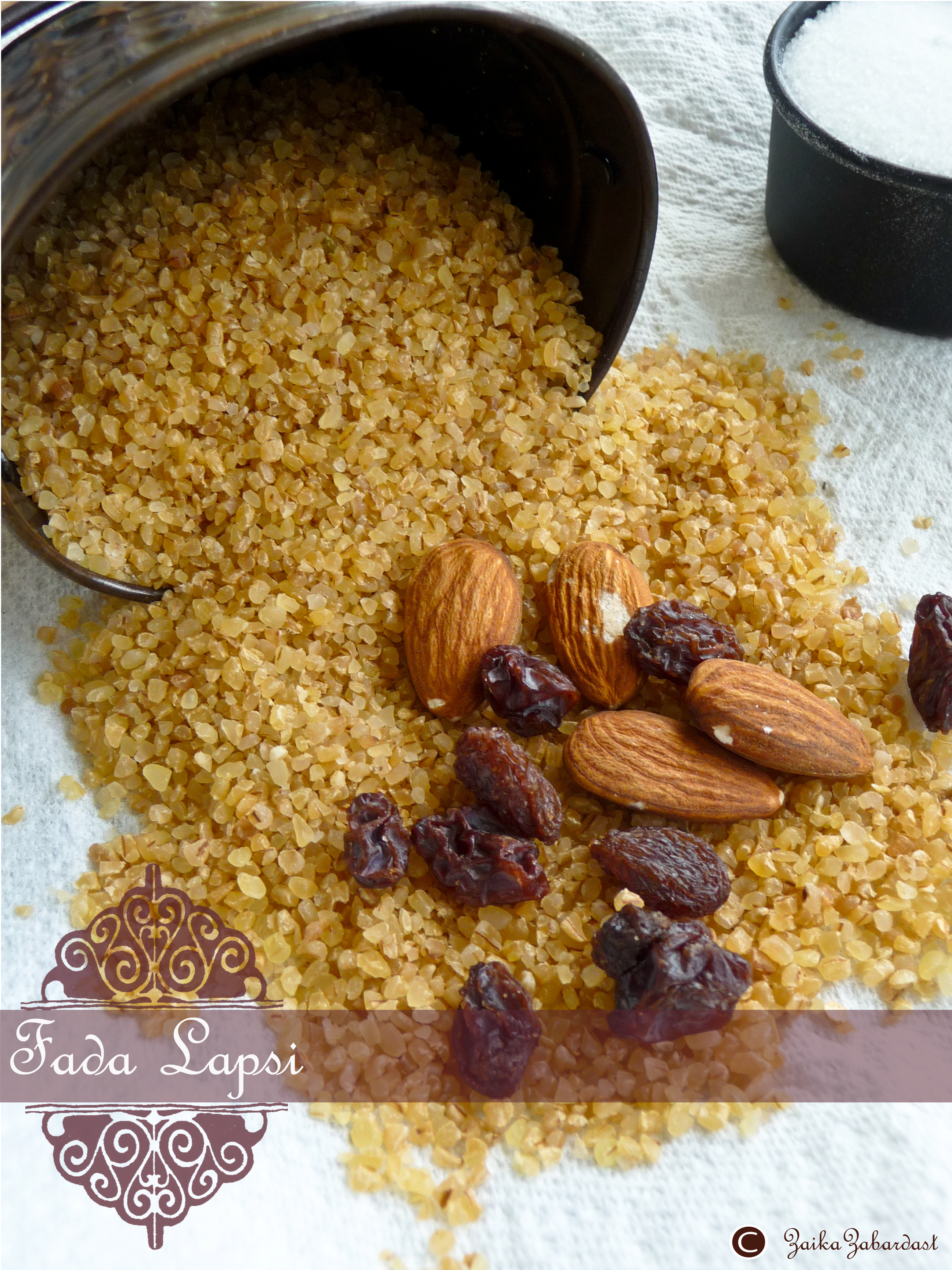 Fada Lapsi is a very traditional dessert of Western India especially for Gujarati community. This dessert is made during very auspicious occasions. Like buying a new house, getting married etc…It’s like a ritual. It is a very first thing a Newlywed bride makes at her husband’s place. It is just one of the way to impress her in-laws since the whole family will be trying her food for the first time. It says that it is very auspicious for her to make this and feed them.