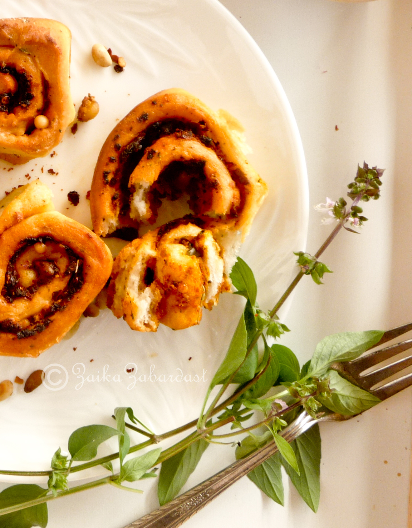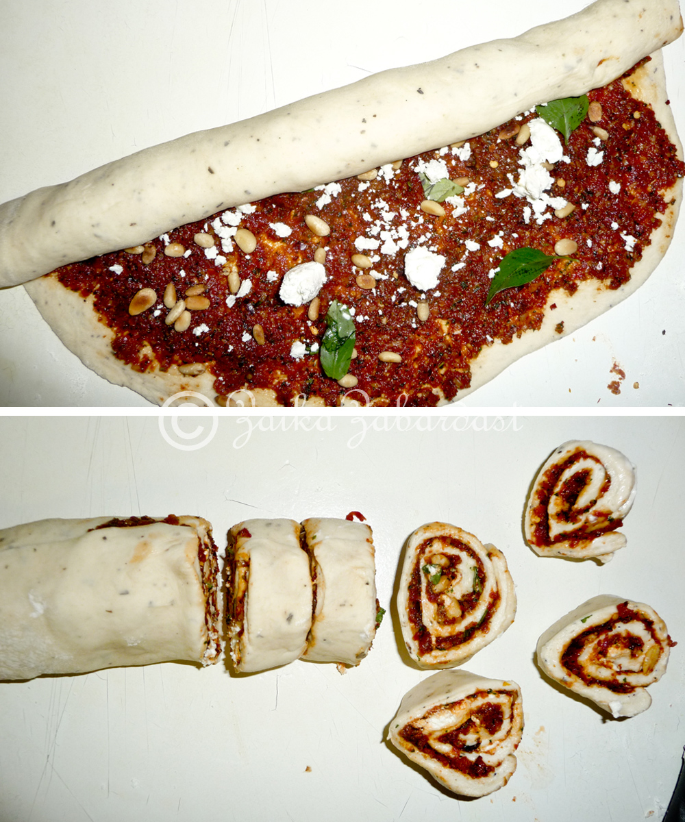 These rolls are just perfect with your morning coffee, afternoon tea or anytime, why to wait for tea/coffee time, right? These soft and savory rolls are filled with the goodness of sun-dried tomato pesto, goat cheese, basil, pine nuts and most importantly they are loaded with lots of love & care. So you can’t go wrong with that.